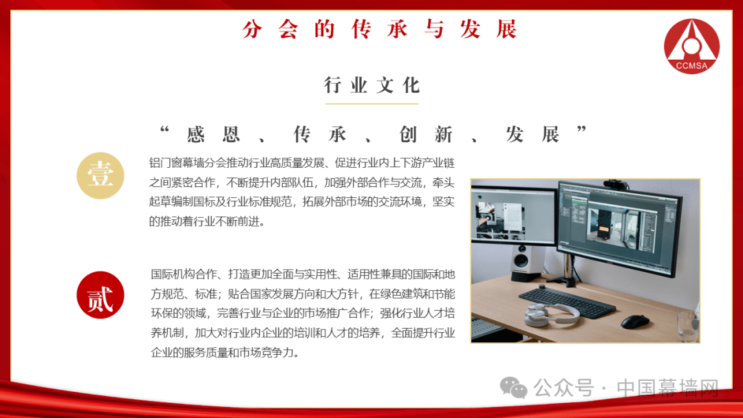 近年来,随着中国经济的转型和升级,门窗幕墙行业正面临着新的发展机遇和挑战。分会积极引导行业企业进行技术创新和转型升级,推动绿色建筑和节能环保的发展,已经取得了较大的成绩,并且开展的企业品牌入库活动获得了巨大成功。